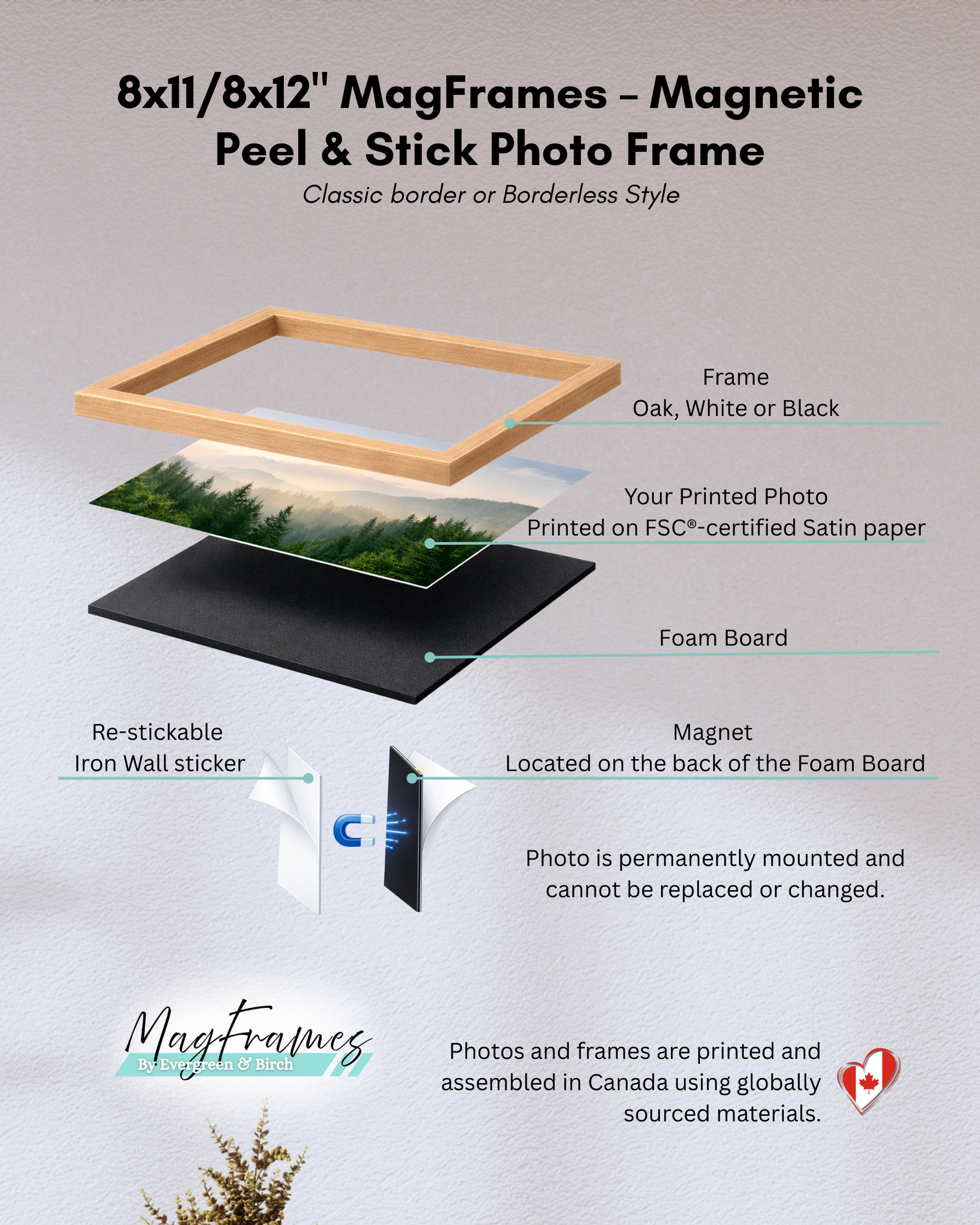 8x11 or 8x12 MagFrames – Magnetic Peel & Stick Photo Frame for Gallery Wall & Home Decor